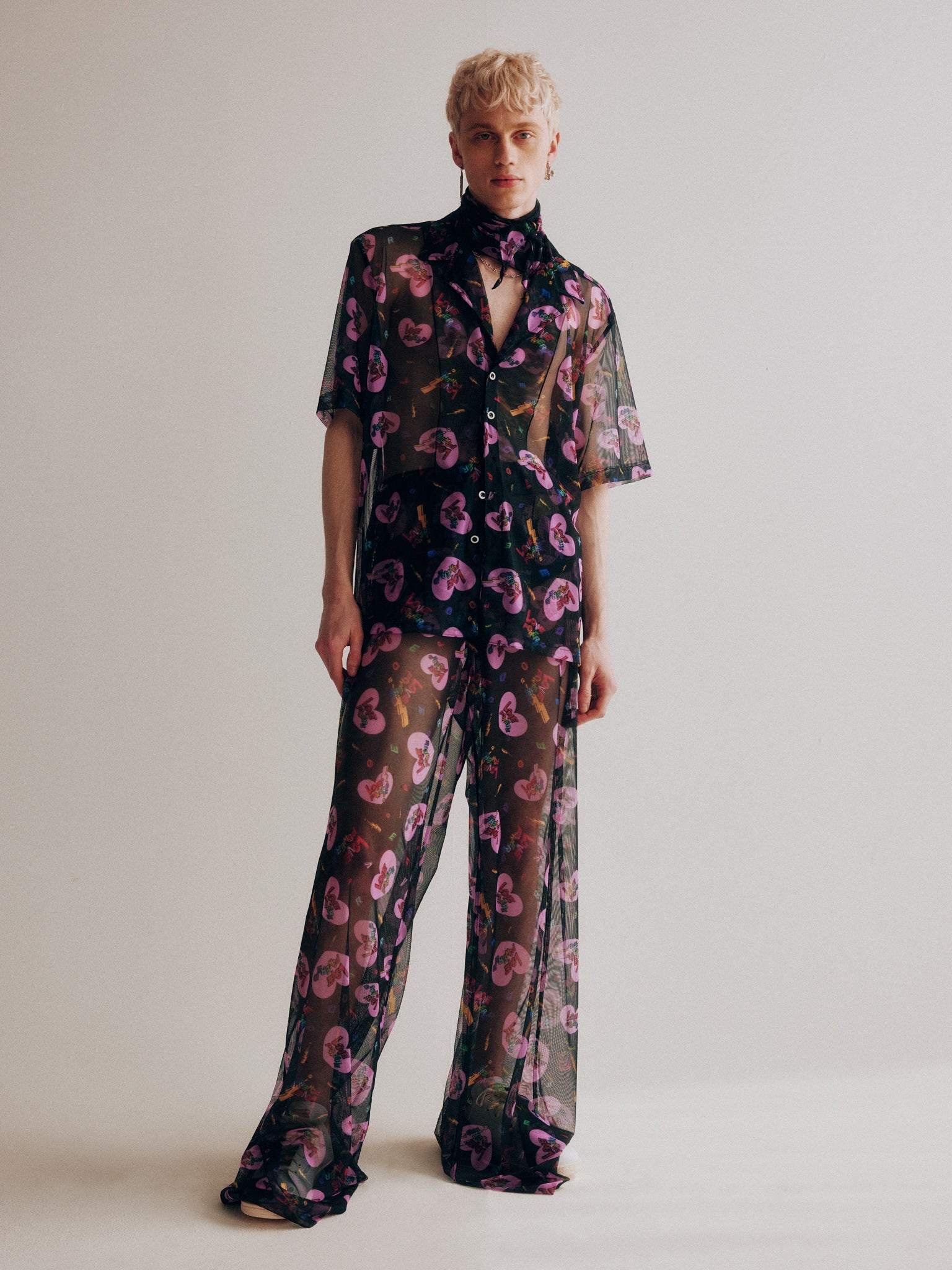 LOVE POWERED, pantalon large en maille unisexe.