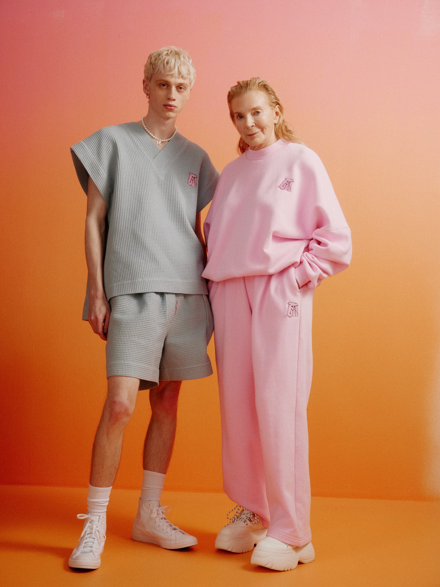Our Pink sweatpants are cut to be worn high-waisted or low, with two side pockets, an elastic waist-band with an organic cotton drawstring.